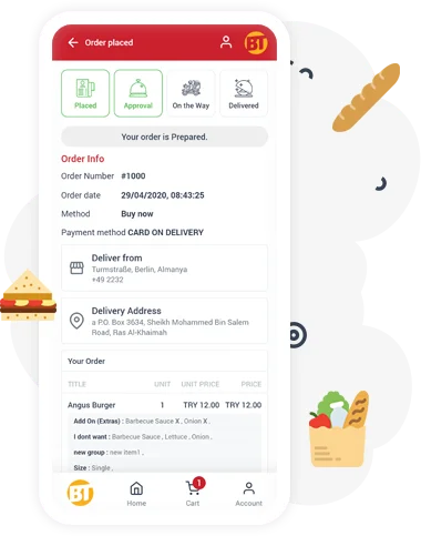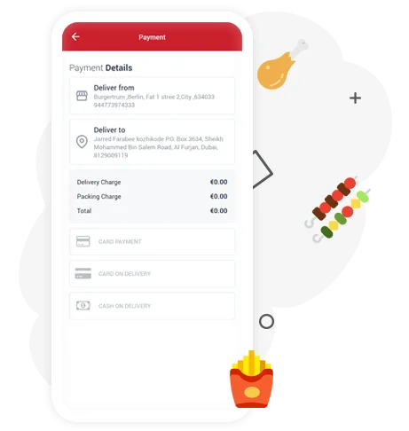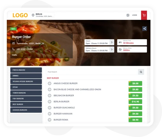 Kunden, die Ihre Online-Essen-Bestellseite erreichen, legen ihre Nahrungsmittelaufträge einfach und kurz.